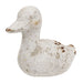 The Distressed Carved Look Cement Duck adds a darling accent to decorative displays. Crafted from cement, the sitter depicts a duck with detailed carved design. Painted with white, the duck features a distressed finish that lets gray and rust colors peek through. A weighty feel and flat base allow for versatile display. Measures 4.5” high by 6” wide by 3.25” deep.