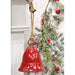 The Distressed Red Metal Bell is a decorative bell made of antiquated red metal in a traditional tiered silhouette. The bell has a metal ball clapper on the inside, as well as a circular red handle with a jute rope loop at the top. The bell is perfect for the Winter and Christmas seasons and can be displayed resting on a tabletop of hanging, using the jute loop. Measures 9" high x 7.25" in diameter.