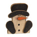 The Distressed Wooden Sitting Snowman is a rustic decor piece made with festive seasonal style. Layered wood design makes up the friendly figure featuring painted features and a distressed finish. The snowman wears black shoes, a black top hat, and a classic orange carrot nose. A flat base allows for stable display on a shelf or tabletop, and the back is unfinished. Measures 6.75” high by 6” wide by 1” deep.
