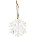 The Distressed Wooden Snowflake Ornament is a versatile winter accent made from wood. The snowflake features a white finish with light weathering for a rustic touch. The ornament hangs from a thin burlap ribbon and can be displayed on a Christmas tree or mantle or used to accent a wrapped gift. Measures 3.5" in diameter by .25" deep.