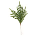 The Evergreen Norfolk Pine Spray is a decorative spray with wintry nature-inspired style. The spray features soft plastic pine needles on a flexible stem wrapped with brown material. The versatile design and flexible feel allow for a range of decor possibilities, from display in a vase to accenting a floral arrangement. Measures 18" high by 7" wide by .5" deep.