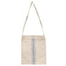 Feed Sack Striped Bag is a fabric bag with a distressed off-white finish and blue striped details. Bag features one carrying strap and it is frayed for an aged and rustic feel and it looks great hung from a hook or ladder and filled with florals. Measures 8.5" high (17.5" with strap) by 7.5" wide.