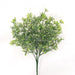 The Flocked Lupine Leaf Bush is a decorative greenery spray with a sturdy green stem. The bush is filled with long stems of textured lupine leaves, complete with a light coat of flocking for a soft, dusted look. Display this bush nestled inside of a vase or pitcher for a natural accent to the home during spring. Measures 15” high.