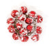 The Snowy Red Jingle Bell Ring is a decorative Christmastime candle ring with a natural brown-wrapped base. The ring features clusters of shiny red jingle bells, all covered with a dusting of thick white flocking for a fresh snowfall effect. Pair this ring with a taper candle and holder for a festive Christmas display on a mantle, tabletop, or shelf. Measures 1.5” in diameter (inner) and approximately 4” in diameter (outer).