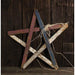 Lath Americana Star is a rustic wooden star that is painted in distressed red, white, and blue colors. Item is accented with a raffia bow and measures 24" in diameter.