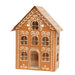 The Metal Gingerbread House Luminary is a festive accent made with whimsical winter style. Crafted from metal, the luminary features the shape of a house and is painted a warm gingerbread color with a distressed finish. Cutout windows and a door allow a peek into the luminary, and white details give the look of piped icing. A hinged door at the back of the house allows a flameless candle (not included) to be placed inside, and a hole allows for easy hanging. Measures 12” high by 9” wide by 4.75” deep.
