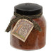 34oz Nutmeg Spice Papa Jar Candle is proudly made in the USA and it smells like fire-roasted almonds, spicy clove, and nutmeg. Candle is 34-ounces and it has a base of clean-burning, blended paraffin wax with two lead-free wicks. Its jar is made of glass and it includes a black metal lid with a homespun gingham ribbon for detail and it has approximately 155 hours of burn time.