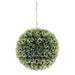 The Snowy Pine Ornament is a decorative kissing ball style ornament made of textured pine greenery. The tips of the pine needles are coated with glittery white flocking to create a fresh snowfall look and the ornament includes a jute loop to use for a hanging display. Place this ornament on a tree, in a doorway, or adorning a bowl or tray for a chic and festive woodland accent in the home during the Winter and Christmas season. Measures 7” in diameter.