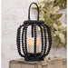 12.5" Sorrento Lantern is a unique way to display candles in any modern farmhouse. Lantern features wooden beads for its frame with a flat base and metal handle for hanging display and transport. It has a raised pedestal in its center for displaying candles and an open top for placing or removing them. Lantern looks great on an entryway console or hung from a hook and measures 12.5" high by 9" wide.