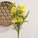 The Sunny Chrysanthemum & Daisy Bush is a bright, fresh faux floral accent for springtime or everyday decor. The bush features flexible branches and a green-wrapped stem. A variety of green leaves sprout from the branches along with small green plastic flowers and bright yellow blooms. The flowers feature a soft feel, dimensional coloring, and realistic detail. Measures 20” high by 6” wide by 3” deep.