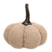 The Tan Knit Pumpkin is a decorative plush tabletop sitter. The pumpkin features a soft beige knit fabric and has a twisted brown resin stem. The pumpkin is made with a weighted bottom to ensure secure display on any flat surface and makes a great addition to autumnal décor. Display this pumpkin on a fireplace hearth, bookshelf, or on a riser surrounded by other tabletop decorations. Measures 6” high by 6.5” in diameter.