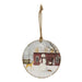 The Friendly Beasts Round Ornament is a hinged metal ornament with a festive holiday design. Ornament depicts a smiling snowman and opens to reveal space for storing trinkets, treasures, and special messages. Ornament has a timeless design that adds a pop of color to any space and looks great displayed on a tree, nail, hook, or knob. It is easily hung by the black hanger attached at the top and measures 2" high by 4.5" wide.
