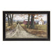 The Road Home Framed Print is a decorative printed artwork piece made of lightweight wood held inside of a wooden frame with a distressed black paint finish. The print depicts a primitive and moody farm scene with a gravel road, tree line, red barn, and stone house. Display this print year-round for a charmingly simple addition to the home, placed standing on a shelf or tabletop. Measures 6" high by 10" wide. Made in the USA!