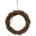 The Twisted Willow Wreath is made of natural dark brown twig material twisted into a round wreath shape. The wreath includes a jute loop to use for a hanging display, bringing a rustic accent to a wall, door, or cabinet year-round. Measures 8” in diameter (outer).