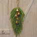 The Vintage Gold Liberty Bells Hanger is an eye-catching decorative ornament suitable for a range of decor styles. Jute rope forms the hanger’s handle, complete with a loop for hanging display. A golden bell hangs from each of 5 rope strands. The bells have a lightly distressed finish for a rustic look. The total height is 18”, and each bell measures 3” high by 2.5” in diameter.  Greenery not included.