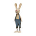 The Vintage Metal Rex Baby Bunny is a unique decorative accent for springtime or rustic displays. Crafted with recycled metal from vintage oil drums and paint cans, the rabbit has a one-of-a-kind look. The white rabbit is styled with long, upright ears, black eyes, and a painted nose. He wears a pair of blue overalls and is shown in a standing position. Heavy distressing and visible seams give the rabbit a rustic finish. Measures 8” high by 2.5” wide by 1.75” deep.