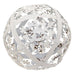 The White Snowflake Sphere is a decorative orb made of distressed white metal. The sphere features a pattern of cutout snowflake graphics, bringing a vintage touch to the home during the Winter and Christmas season. Display freestanding on a table or shelf, or place inside of a tray or bowl. Measures 5” in diameter.