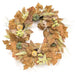 The Wind Washed Fall Foliage Wreath is a festive floral accent made with nature-inspired Autumn style. Orange and brown leaves make up the wreath along with berry and grass accents. Faux pumpkins in shades of orange and green accent the wreath which features a distressed finish for a wind-washed look. Measures approx. 24 in. in outer diameter.
